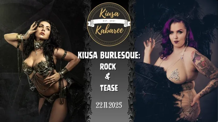 Kiusa Kabaree tarjoilee ennennäkemättömän illan, joka räjäyttää Kerubin Salin metalli- ja rockmusiikin sekä burleskin yhdistävällä, sihisevän kuumalla rocklesque-showlla! Ukrainalainen metalli- ja fuusiovatsatanssin jumalatar Diana Bastet saapuu ensimmäistä kertaa Suomeen ja on luvannut meille aivan erityisesti suomalaista metallimusiikkia kunnioittavan numeron. Lisäksi lavan ottaa haltuun kotimaisen burleskin timantti Olivia Rouge, joka yhdistää numeroissaan niin tiukan rock-asenteen kuin satumaisen Hollywood-glamourin, sekä Anna Ivana Julma, jonka armottoman julmaa huvia Joensuun burleskiyleisö on saanut nauttia jo useampaan otteeseen - janoten aina vain lisää! Kattaus täydentyy vielä myöhemmin kotimaisilla artisteilla. Luvassa on illan täydeltä synkkää glamouria, niittiä ja nahkaa, ja anteeksipyytelemätöntä Kiusa-asennetta, joka sivaltaa kuin ruoska - jättäen ihanan poltteen poskille ja mieleen.