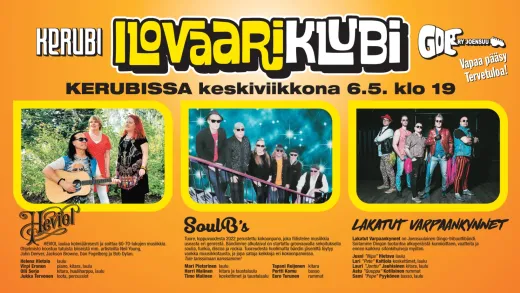 LounaslistaKerubi tyydyttää monenlaista nälkää. Himoitset sitten hyvää ruokaa, parasta keikkaa tai rempseää tunnelmaa, niin meillä sitä on. Tuomme kulttuurin iholle elävässä musiikissa, komiikassa, teatterissa, teemabileissä ja teknoreiveissä. Ruokamme on burgeria, lihaa, kalaa ja kasvista. Mehevää, savuisaa ja raikasta. Annoksia, jotka valmistetaan vain meillä. Alennus Kantiskortilla, opiskelijakortilla ja eläkeläiskortilla kaikista Kerubin ruuista -10 %.