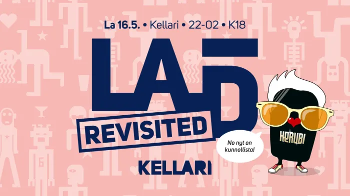 Lauantai ja disco ne yhteen soppii. On discoo, jytää ja hiphoppii. Tänään ei Kerubin Kellarissa soi Aqua, E-Rotic ja Scooter, pikemminkin Outkast, La Roux, Sophie Ellis-Bextor ja MGMT ja moni moni muu. Lauantaidiscoa, tai kavereiden kesken ihan vaan LADia, juhlittiin nykyisen Kerubin alkuajoista saakka ensimmäiset 10 vuotta. Nyt palataan noihin tunnelmiin. Lauantaidisco Revisited soittaa tiukkaa tyyleistä riippumatonta hittikimaraa Kerubin Kellarissa lauantaina 16.5., ja sehän puolestaan meinaa tanssikalossien kopinaa. Lauantaidiscon virallisena musiikkioperaattorina häärää DJ Johanne Teppo.