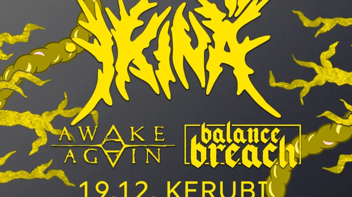 19.12. lavalle astelevat parhaat kotimaiset genren edustajat, tyylirajoja jo vuosia venytellyt ja uransa raskaimman levynsä julkaissut IKINÄ, juuri kolmoslevynsä julkaissut metallifestarikonkari, Atlantin toiselta puolen tuttuja vaikutteita kotipohjoiseen melankoliaan sekoitellut Balance Breach sekä veikeitä kuljetuksia hardcore-ilmaisuun suu virneessä kytkevä Awake Again.