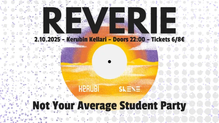 Reverie ei ole vain tavalliset opiskelijabileet. Reverie on ilta, joka keskitty Berlinistä lähtevaăn ja kovaa vauhtia maailmaa valloittavaan soundiin jota artistit kuten Marlon Hoffstadt, Southstar, DJ Heartstring. Malugi ja Ki/Ki ajavat eteenpäin. Reverie tuo Kerubille kovan DJ kattauksen ja vastustamattoman produktion jota ei Joensuun opiskelijabileissä olla aikaisemmin nähty. Jätä egosi kotiin (tai viimeistään narikkaan) ja tule juhlimaan!